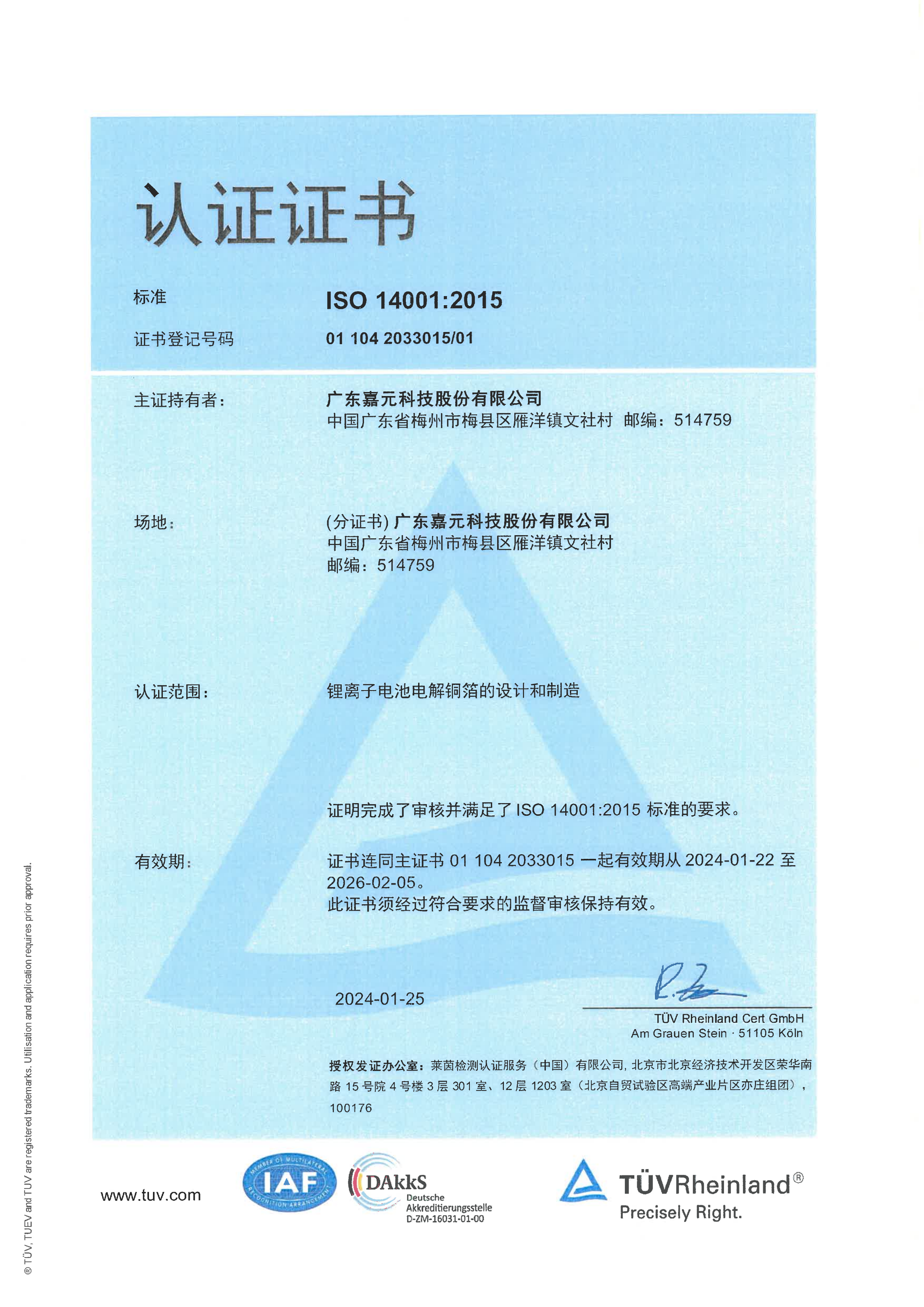 ISO 14001:2015認(rèn)證證書