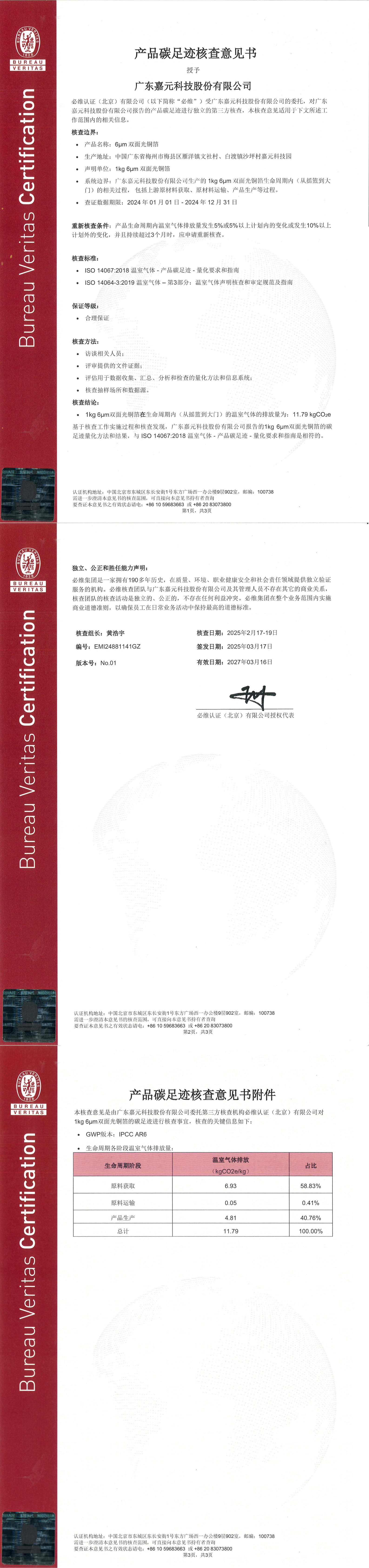 產(chǎn)品碳足跡核查意見書(中英文版)